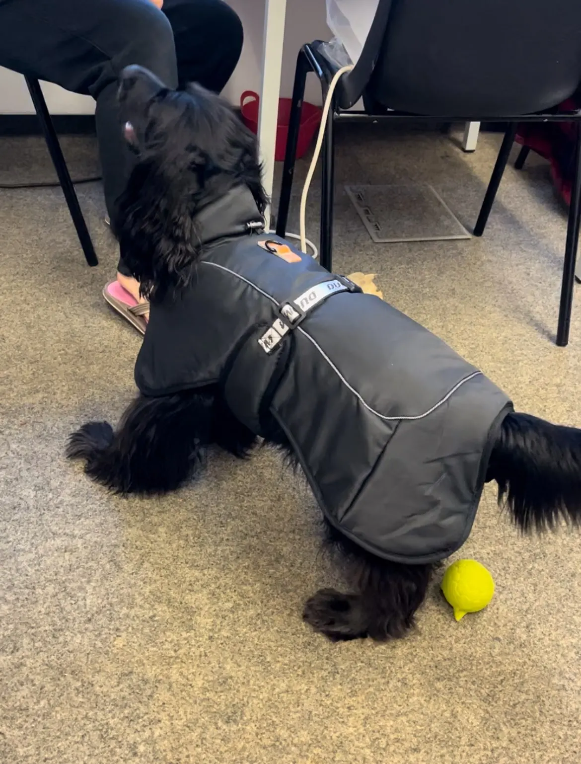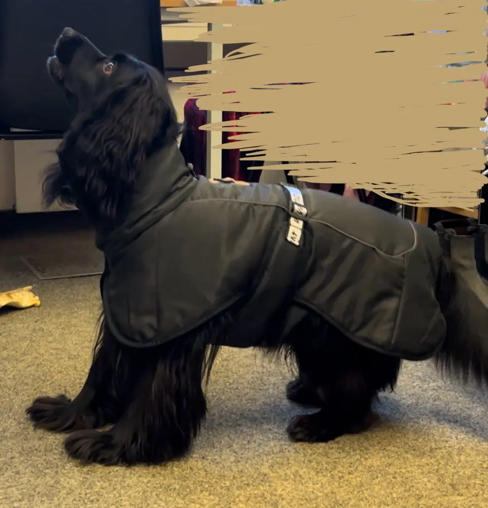 My mistake that they aren’t waterproof but excellent for the cold dry weather. Needed to cut the waist strap shorter for the whippets but otherwise pe...More