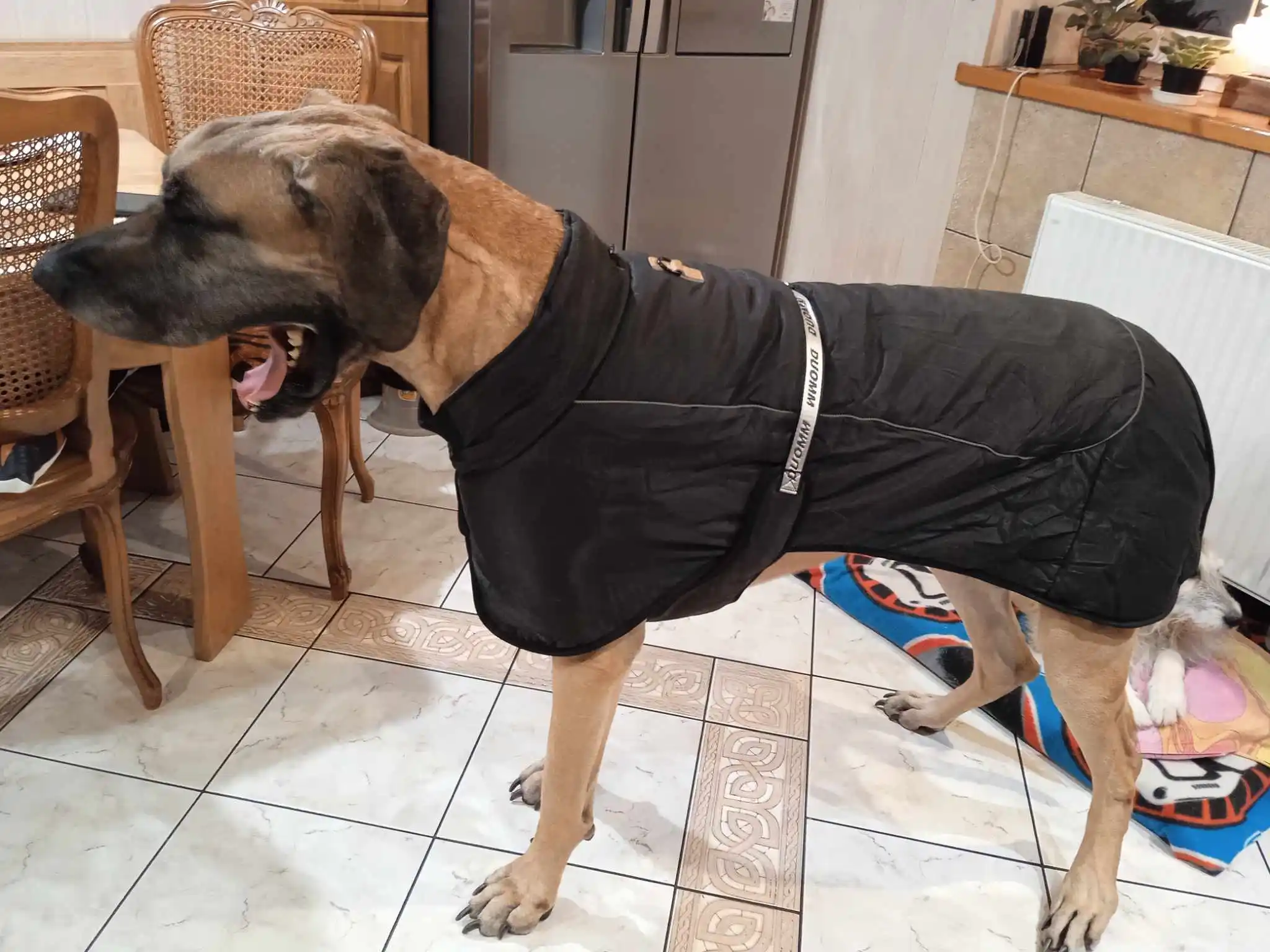 The clothes are perfect for my dog-Great Dane. I was looking for suitable clothes for such a large 6XL dog for a long time: neck 65cm, chestnut 105 cm...More