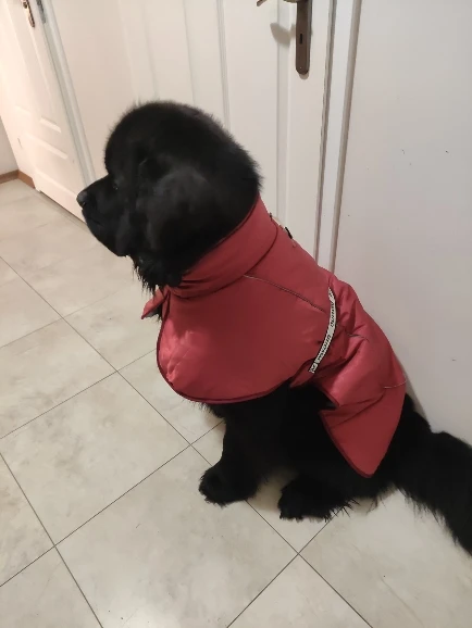 Is the second one I buy from this seller. Very fast shipping, before date. The cool raincoat is the only one I have found that is worth my little ones, and the largest weighs 78kg is Newfoundland. The only thing is that the long back does not reach them all the way back but due to its size it is logical. I would need a 7XL but there is none of those. This at least fasten them and covers almost entirely, from other manufacturers there is no size or that approaches.