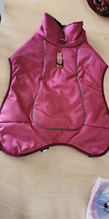 I was pleasant surprised by the beautiful quality of this dog coat! It is simply perfect! Red color (rather "red brick") is better than in the photos, according to my opinion. The seams are well made, the size corresponds to the description.