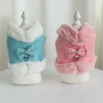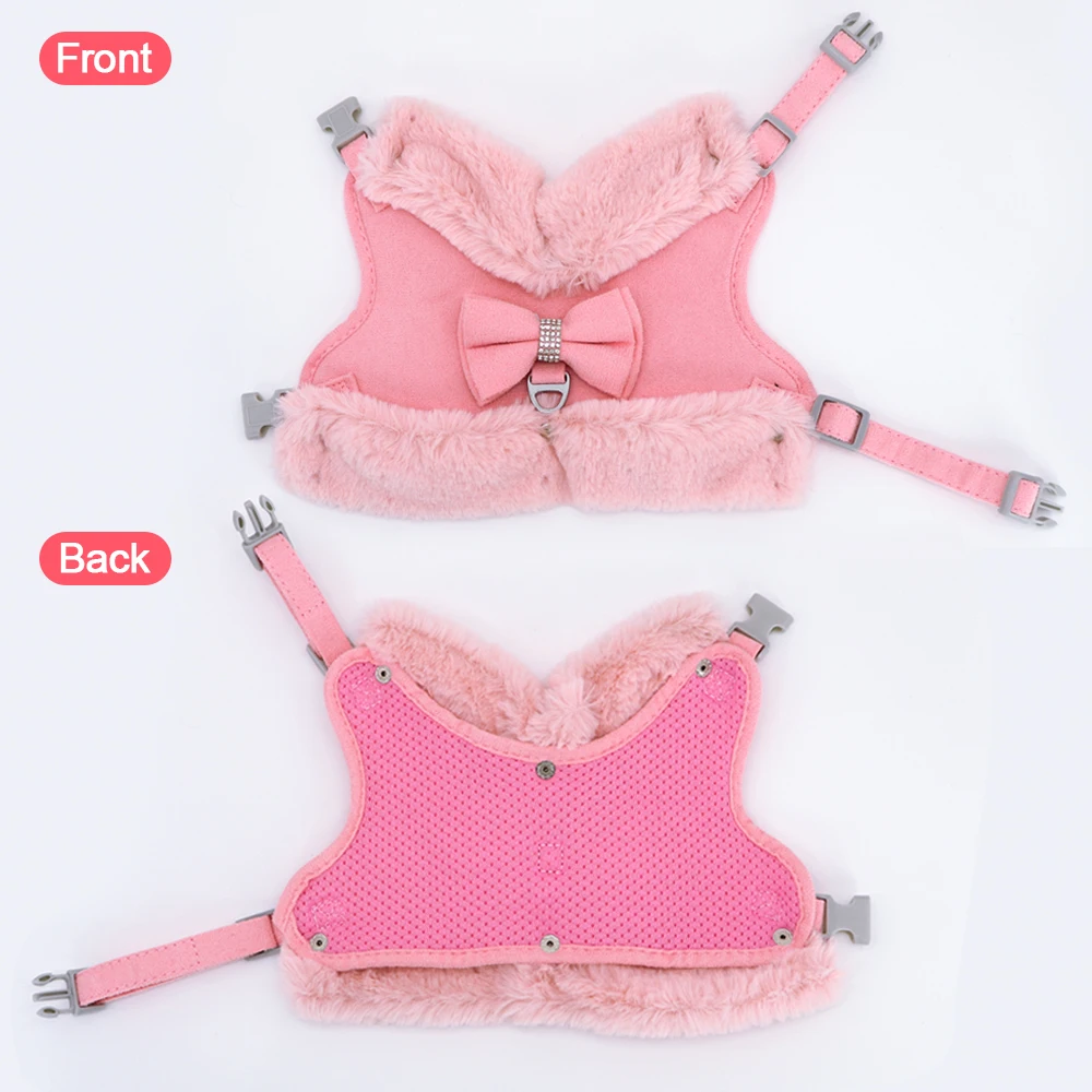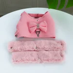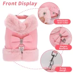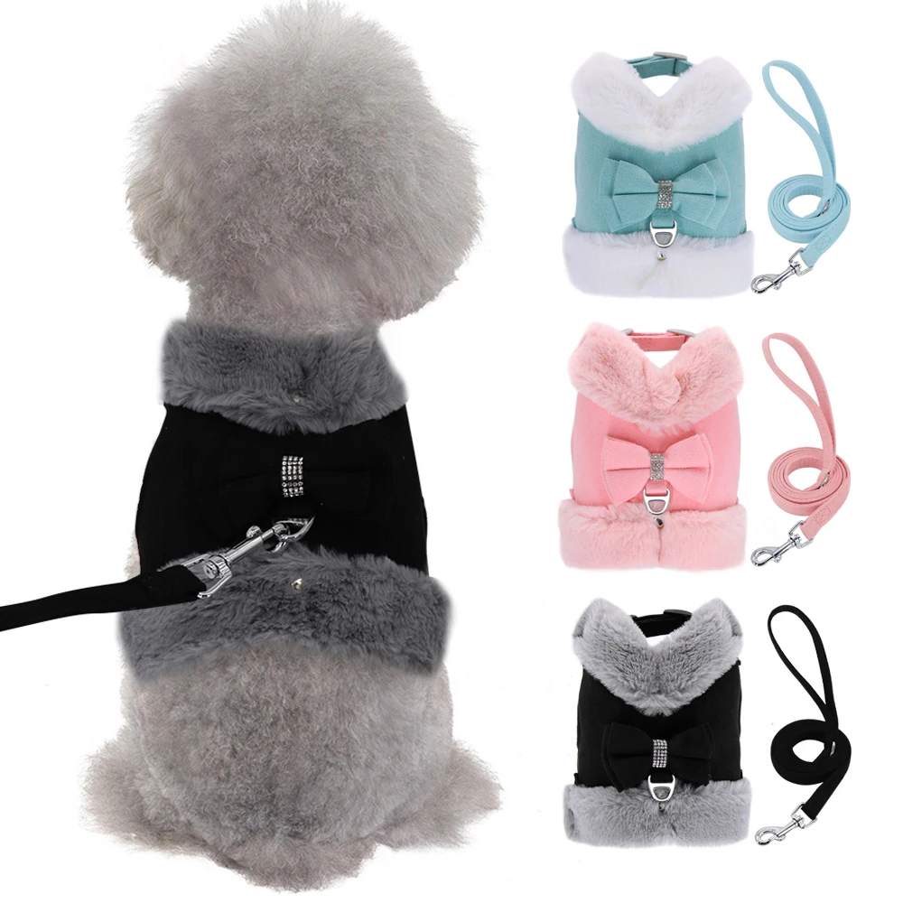 Warm Winter Dog Harness and Leash Set Mesh Padded Puppy Cat Vest Harness Pet Walking Leash Rope With Fur Collar Bowtie Accessory
