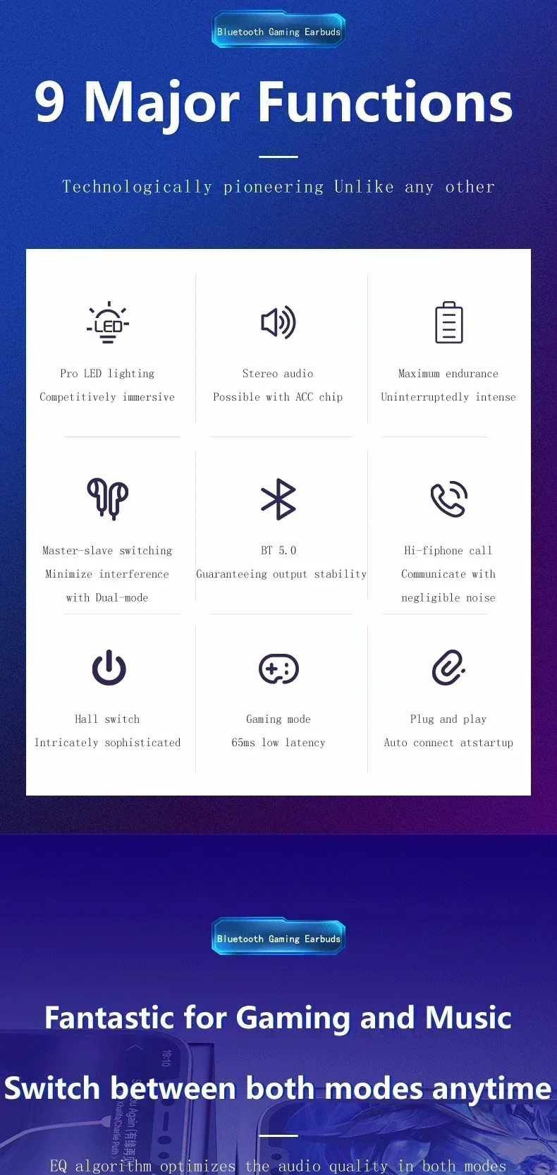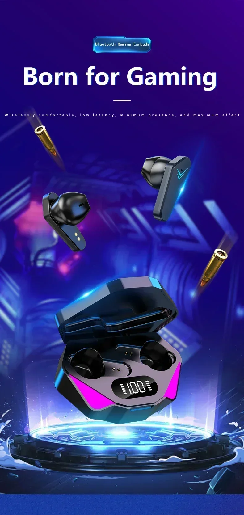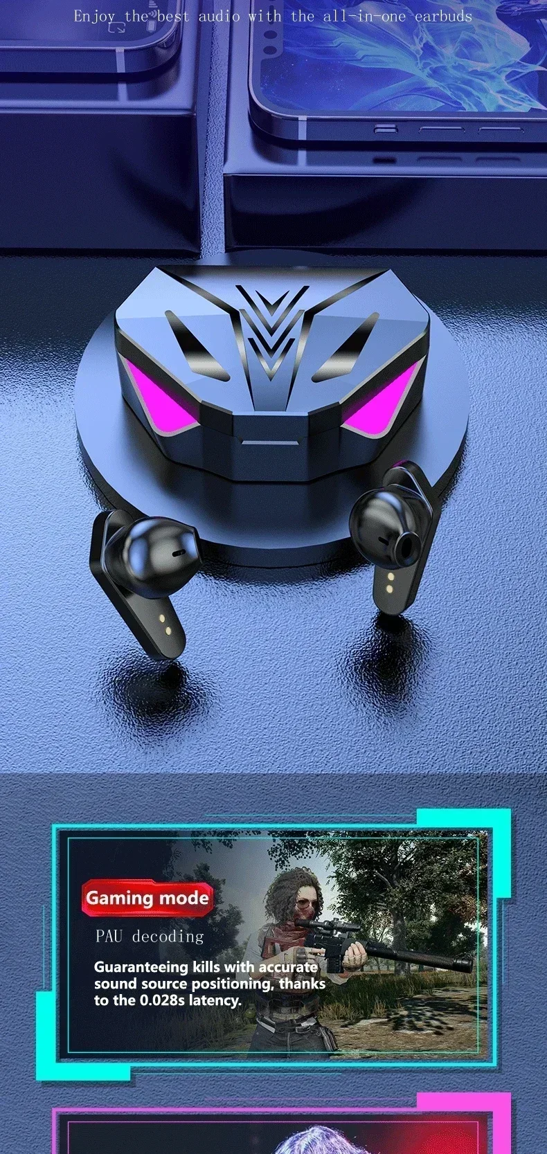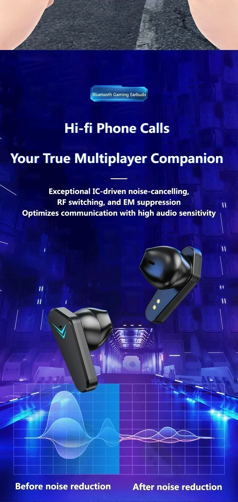 Wireless Bluetooth Gaming Earphones with Low Latency and Mic