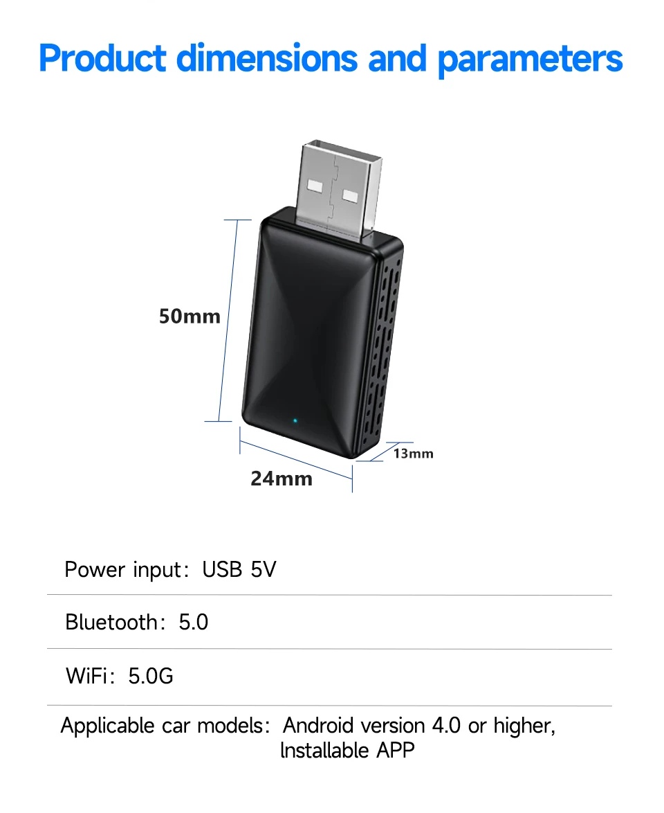Functional specifications: wired to wireless Andriod AUTO+ wired to wireless Carplay