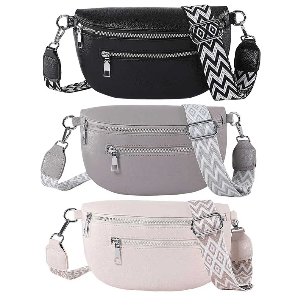 Women Stylish Crossbody Bag with Wide Strap Simple Shoulder Bag Multi-pocket Fashion Sling Bag Travel Outdoor Bag