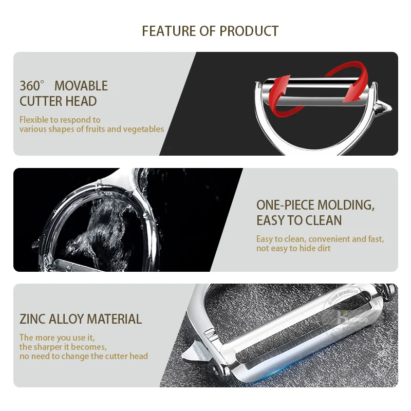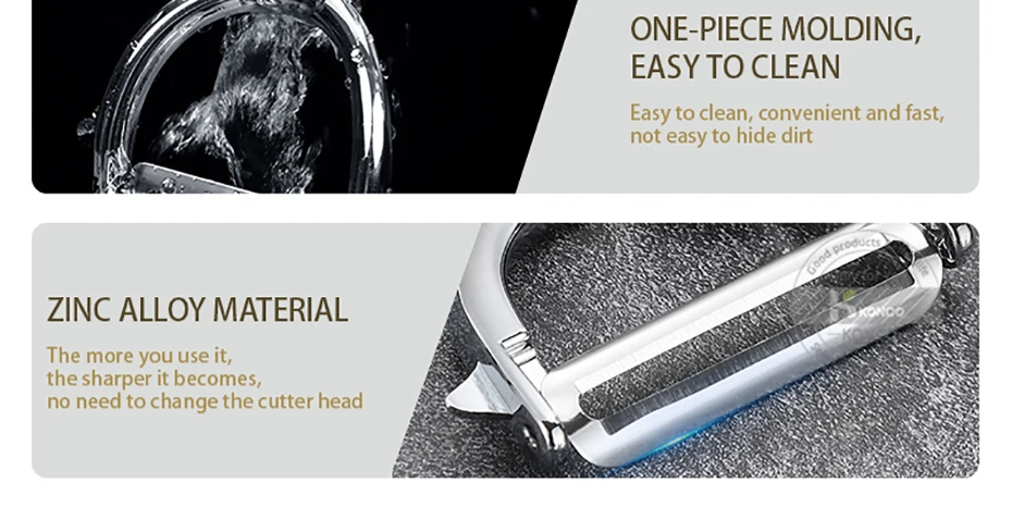 2.【Top Grade High Quality Material】Top quality rust-free potato peeler, stainless-steel (304) blade which is better than the zinc alloy body, non-rust guaranteed, durable and anti-corrosion, water proof.