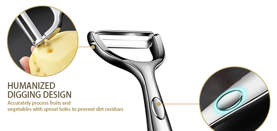 1.【Multi-Purpose Vegetable Peeler】 Best for Potatoes, vegetable, Fruit, apple, veggie, carrot, pear, cucumber and more. Built-in potato-eye remover, multi-function peeler.