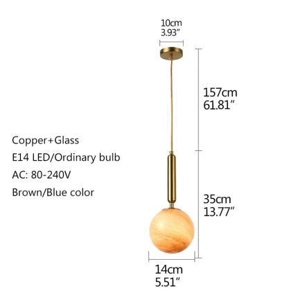 Cosmic Elegance Nordic Earth Moon Hanging Light Copper Holder, Perfect for Children’s Rooms, Restaurants, and Bedrooms
